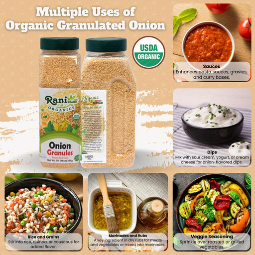 Product Type: GranulatedPackaging: PET JarNet Wt. 16oz (1lb) 454gProduct of India Ingredients: Organic Granulated Onion You'll LOVE our Organic Gr...