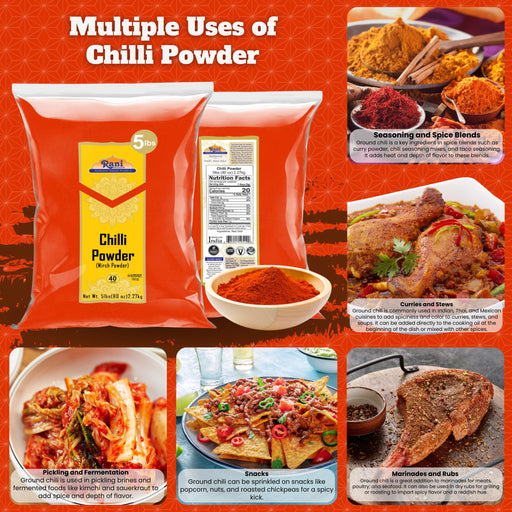 Product Type: Chilli PowderPackaging: Plastic BagNet Wt.: 80oz (5lbs) 2.27kgProduct of India Ingredients: Chilli Ground Powder You'll LOVE ou...