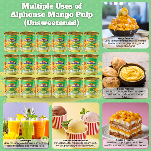 Product Type: PureePackaging: CanNet Wt. 30oz (1.875lbs) 850g x Pack of 6Product of India Ingredients: Alphonso Mango Pulp, Water, Sugar, Citric A...
