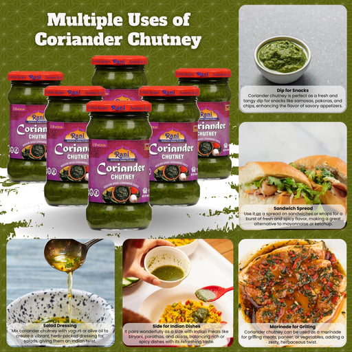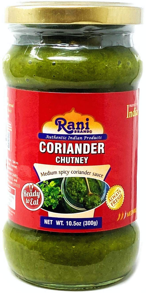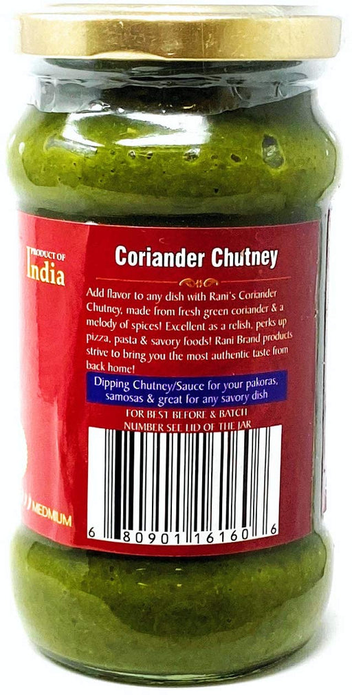 Product Type: ChutneyPackaging: Glass JarNet Wt. 10.5oz (300g)Product of India Ingredients: Water, Sugar, Fresh Coriander, Spices (Cumin, Black pep...