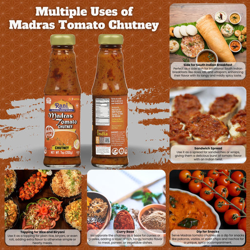 Product Type: ChutneyPackaging: Glass BottleNet Wt. 7oz (200g)Product of India Ingredients: Tomatoes, Water, Sugar, Distilled Malt Vinegar, Sun...