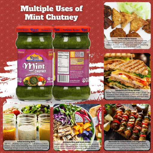 Product Type: ChutneyPackaging: Glass JarNet Wt. 10.5oz (300g)Product of India Ingredients: Water, Sugar, Fresh Mint, Spices (Cumin, Black pepper,...