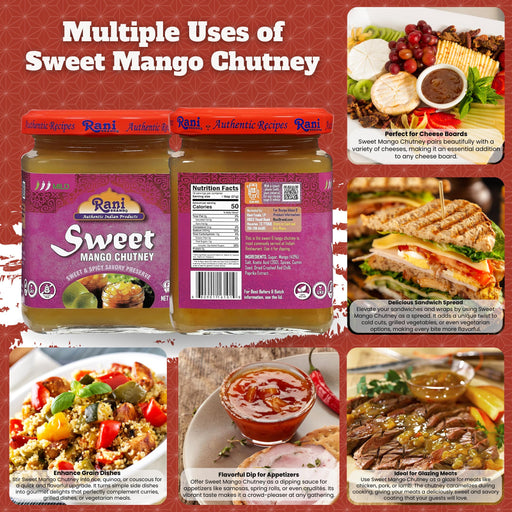 Product Type: ChutneyPackaging: Glass JarNet Wt. 12.3oz (350g)Product of India Ingredients: Sugar (46%), Mango (38%), Water (12%), Ginger, Garlic...