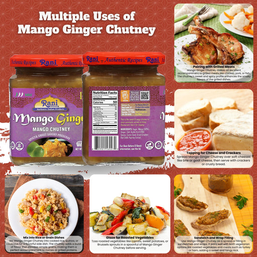 Product Type: ChutneyPackaging: Glass JarNet Wt. 10.5oz (300gProduct of India Ingredients: Sugar, Mango, Shredded Ginger, Water, Acetic Acid, Gar...