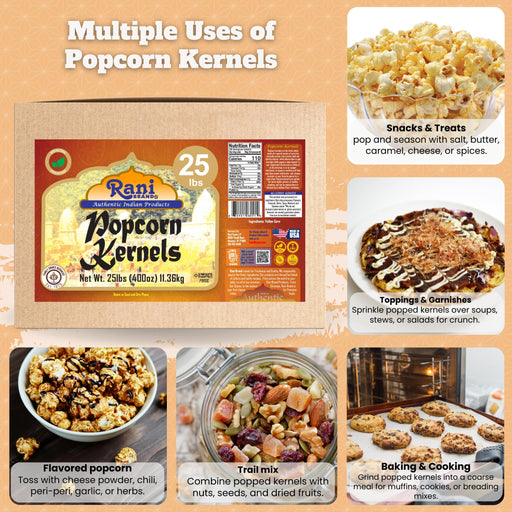 Product Type: SnacksPackaging: Bulk BoxNet Wt. 160oz (10lbs) 4.54kgProduct of USA Ingredients: Yellow Corn You'll LOVE our Popcorn Kernels by Rani...