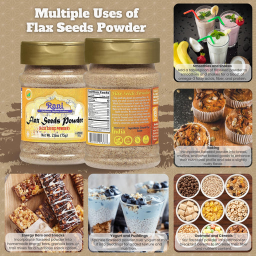 Rani Flax Seeds Powder (Alsi, Linum usitatissimum) 2.6oz (75g) PET Jar | All Natural ~ Gluten Free Ingredients | Non-GMO | Kosher | Vegan | Indian Origin