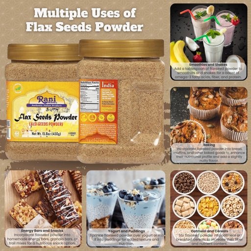 Rani Flax Seeds Powder (Alsi, Linum usitatissimum)15.8oz (450g) PET Jar | All Natural ~ Gluten Free Ingredients | Non-GMO | Kosher | Vegan | Indian Origin