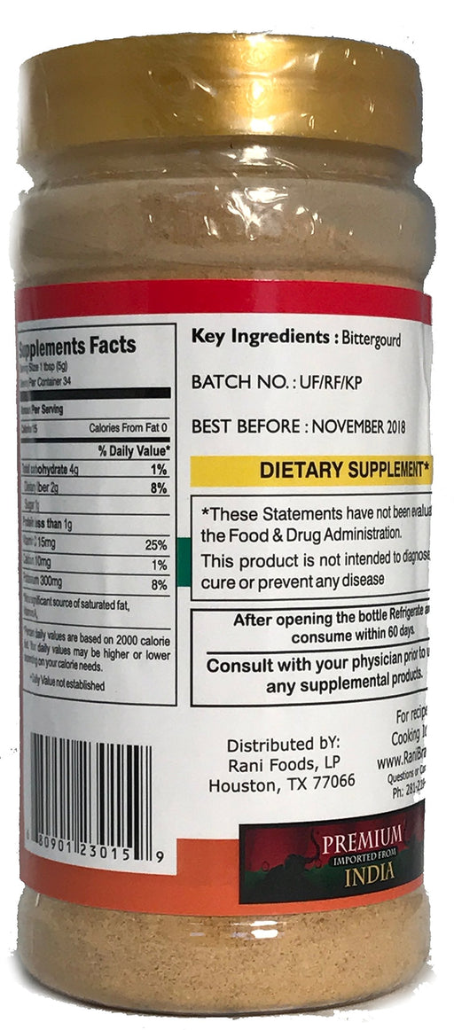 Rani Karela (Bitter Gourd / Charantish) Powder 6oz (172g) All Natural, Salt-Free | No Colors | Gluten Friendly | NON-GMO | Indian Origin