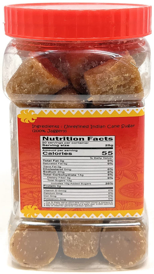 Product Type: Unrefined SugarPackaging: Plastic JarNet Wt. 17.5oz (1.1lbs) 500gProduct of IndiaIngredients: Jaggery, Permitted Food Colors (Tartraz...