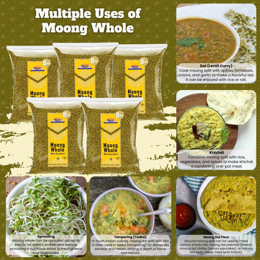 Product Type: WholePackaging: Plastic BagNet Wt. 128oz (8lbs) 3.63kg x Pack of 5Product of IndiaIngredients: Moong Whole (Mung Beans with skin) Yo...