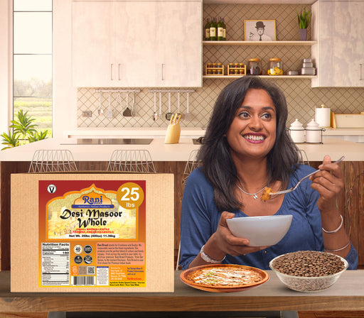 Product Type: Desi Masoor WholePackaging: BoxNet Wt. 400oz (25lbs) 11.36kgProduct of India Ingredients: Pardina Spanish Crimson / American Brown L...