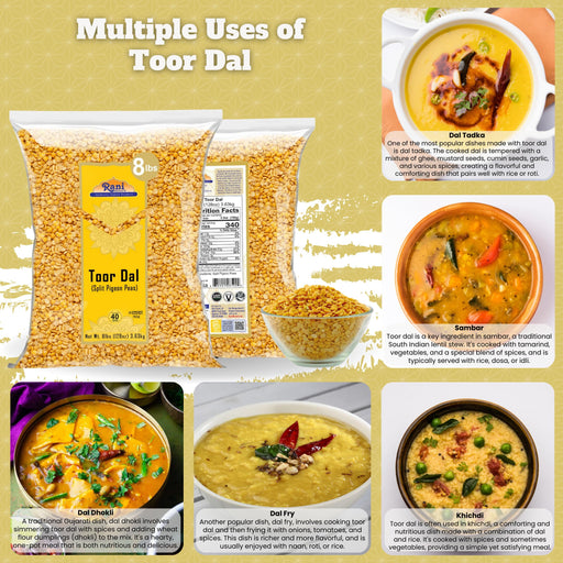 Product Type: DalPackaging: Plastic BagNet Wt. 128oz (8lbs) 3.63kgProduct of India Ingredients: Split Pigeon Peas (Toor Dal) You'll LOVE our Toor...