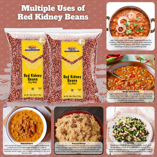 Product Type: BeansPackaging: Plastic BagNet Wt. 10x4lbs Bulk Pack of 10, 40 Pounds totalProduct of India Ingredients: Light Red Kidney Beans, Drie...