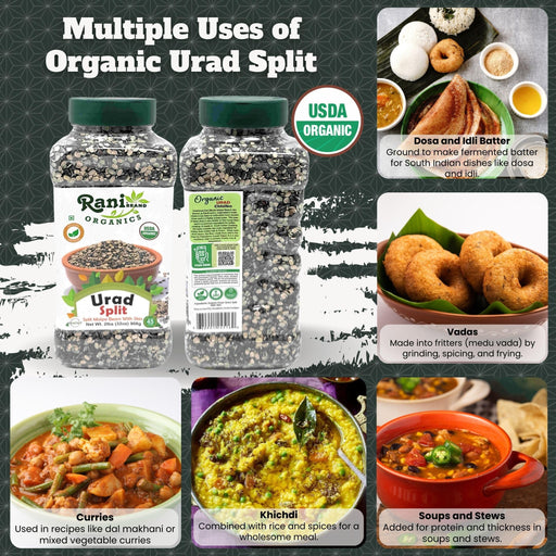 Product Type: Split BeansPackaging: PET JarNet Wt. 32oz (2lbs) 908gProduct of India Ingredients: Organic Urid Split (Split Matpe Beans With Skin Y...
