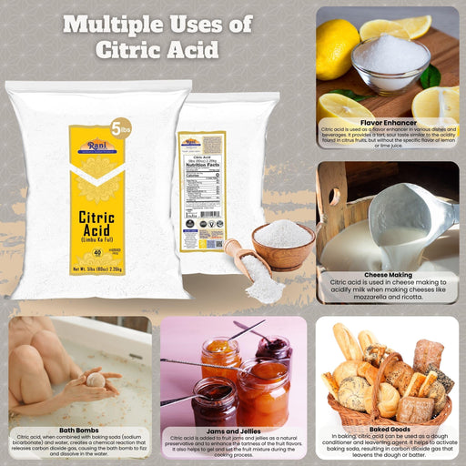 Rani Citric Acid Powder, Food Grade (Limbu Ka Ful) 80oz (5lbs) 2.27kg Bulk ~ Used for Cooking, Bath Bombs, Cleaning | Gluten Friendly | Kosher | Indian Origin