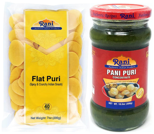 Rani Pani Puri Coins (Uncooked, Microwaveable wheat and Semolina Coins) 7oz (200g) with Pani Puri Concentrate (Sweet & Spicy to make Pani Water / Spicy Water) 10.5oz (300g) ~ All Natural | Vegan | NON-GMO