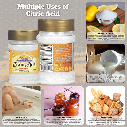 Product Type: Citric AcidPackaging: PET JarNet Wt. 5oz (141g)Product of India Ingredients: Citric Acid PRODUCT INFORMATION Citric Acid is a natu...