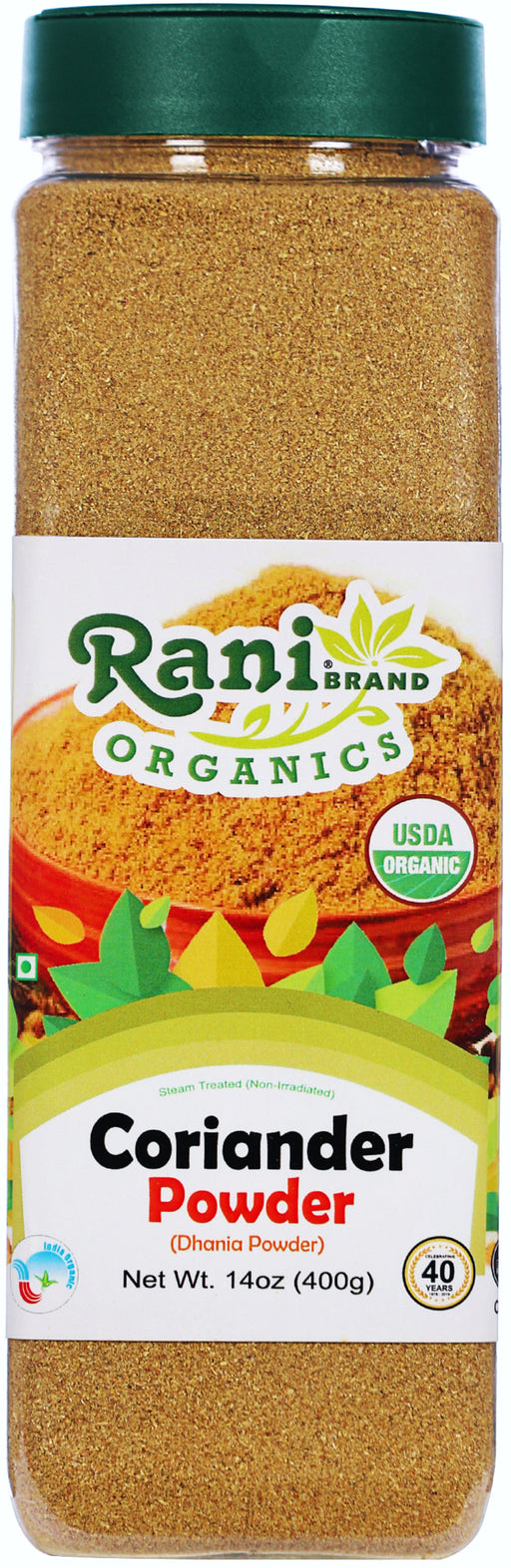 Product Type: Single Herbs and SpicesItem Form: PowderPackaging: Plastic JarNet Wt. 14oz (400g)Product of IndiaIngredients: Organic Coriander Groun...