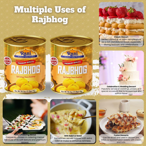 Product Type: SweetsPackaging: CanNet Wt. 35.3oz (2.2lbs) 1kg Pack of 6Product of India Ingredients: Sugar Syrup, Cottage Cheese (Cheena of Cow Mi...