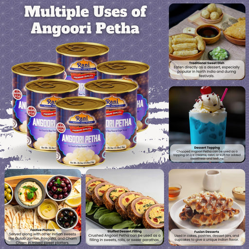 Product Type: SweetsPackaging: CanNet Wt. 35.3oz (2.2lbs) 1kg, Pack of 2Product of India Ingredients: Sugar Syrup, Ash Gourd Natural Preservatives...
